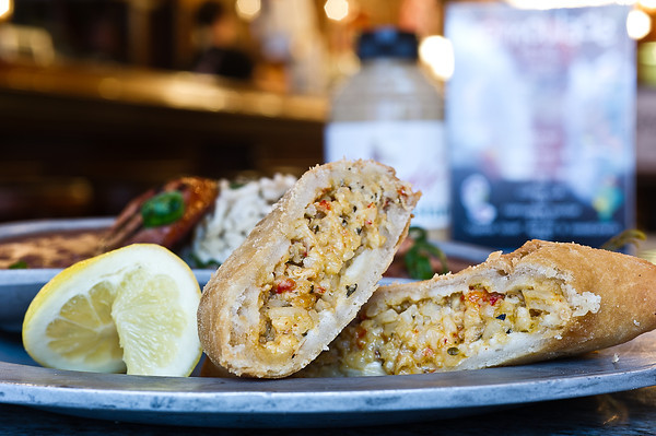 Place a skillet over medium heat and add the butter. When it is hot, add the celery, green onions and garlic and cook for about 4 minutes, until softened. Stir in the lemon zest, Tabasco, wine and Cajun Seasoning. Bring to a simmer and add the crawfish tails. Stir for about 2 minutes, until warmed through, then stir in the cream cheese and continue stirring until the cheese has melted. Remove the pan from the heat and let cool to room temperature.
